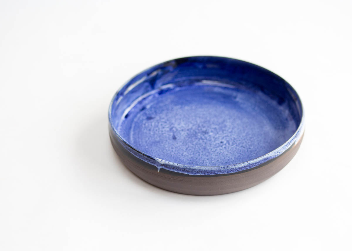 Inspired by Kerið Crater near Reykjavík, this piece captures the depth and drama of Iceland’s volcanic landscape. Thrown from black schwarztone stoneware and finished with layered cobalt blue and tin glazes inside, each surface has a rich sense of depth and movement, with a softly dipped rim for contrast. We love its versatility, striking as a standalone object or beautifully functional as a serving dish.