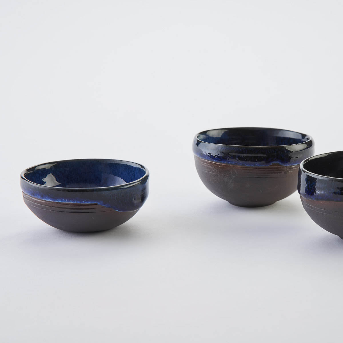 Inspired by the dramatic basalt beaches of Vík in southern Iceland, these bowls celebrate texture, contrast, and movement. Thrown and textured from black onyx porcelain, they’re finished with cobalt blue or copper green gloss glazes and a white tin-dipped rim. The glazes melt together in the kiln, creating a beautifully fluid, one of a kind finish. Perfect for chilli flakes, salt and pepper, or simply enjoyed as small sculptural accents.